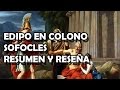 Edipo, ciego y ya muy anciano apoyado en el brazo de su hija Antígona, que le sirvió de lazarillo, ha llegado a Colona, en las cercanías de Atenas, y se interna, para descansar en un bosque que resulta ser el de las Euménides.